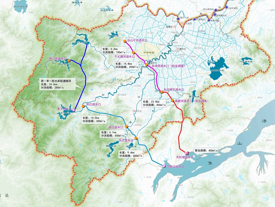 甬江流域南排通道工程項(xiàng)目建議書:該工程為《甬江流域防洪治澇規(guī)劃(2021-2035 年)》確定的甬江流域最大的分洪工程,工程擬設(shè)置東、西兩條分洪線路,總長約96.6公里,總規(guī)模1000立方米每秒。工程實(shí)施后,與規(guī)劃內(nèi)工程聯(lián)合運(yùn)用,將有效提升流域和區(qū)域防洪排澇能力。
