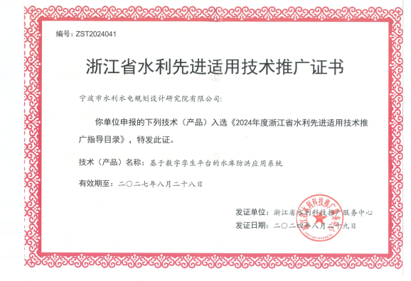 在產(chǎn)品創(chuàng)新方面,分別獲得第三屆寧波市專利創(chuàng)新大賽專利優(yōu)秀獎(jiǎng)、“寧波市優(yōu)秀軟件產(chǎn)品”稱號(hào)、2024年“數(shù)據(jù)要素x”大賽浙江分賽獲優(yōu)勝獎(jiǎng),入選2024年度浙江省水利先進(jìn)適用技術(shù)推廣指導(dǎo)目錄、2024年度寧波市優(yōu)質(zhì)產(chǎn)品推薦目錄和2024年浙江省數(shù)字經(jīng)濟(jì)發(fā)展優(yōu)秀案例近20項(xiàng)。