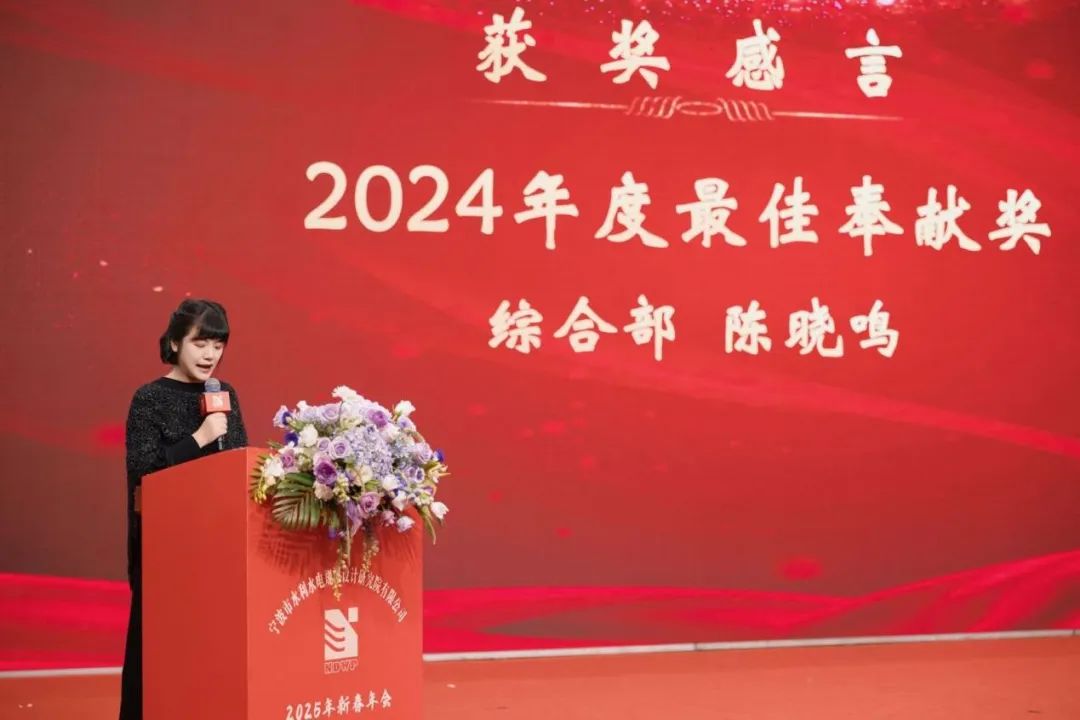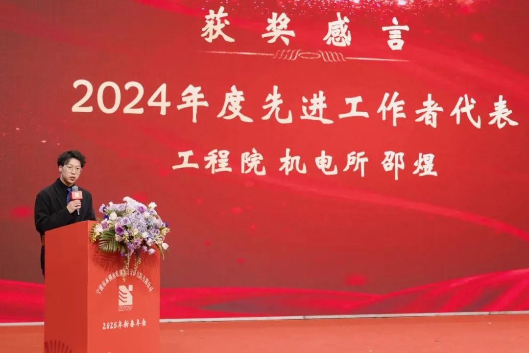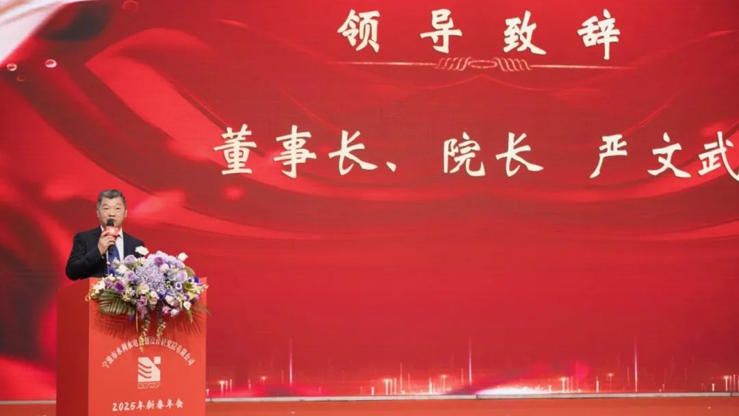 我院董事長、院長嚴(yán)文武的致辭為晚會拉開序幕。嚴(yán)院長表示,2024年,全院團(tuán)結(jié)一致,協(xié)同發(fā)力,攻堅克難,用一張優(yōu)秀的成績單為我院新征程吹響了號角;2025年,我院新大樓的落成,這是我院發(fā)展的新的里程碑,也是邁向新征程的起點(diǎn),希望所有員工共享新家園,愛護(hù)新家園,繼續(xù)傳承和發(fā)揚(yáng)寧波院人堅持不懈的優(yōu)良傳統(tǒng),再創(chuàng)佳績!最后,嚴(yán)院長對所有員工的辛勤付出表示感謝,致以祝福,祝愿寧波院在2025年乘風(fēng)破浪,再創(chuàng)輝煌!