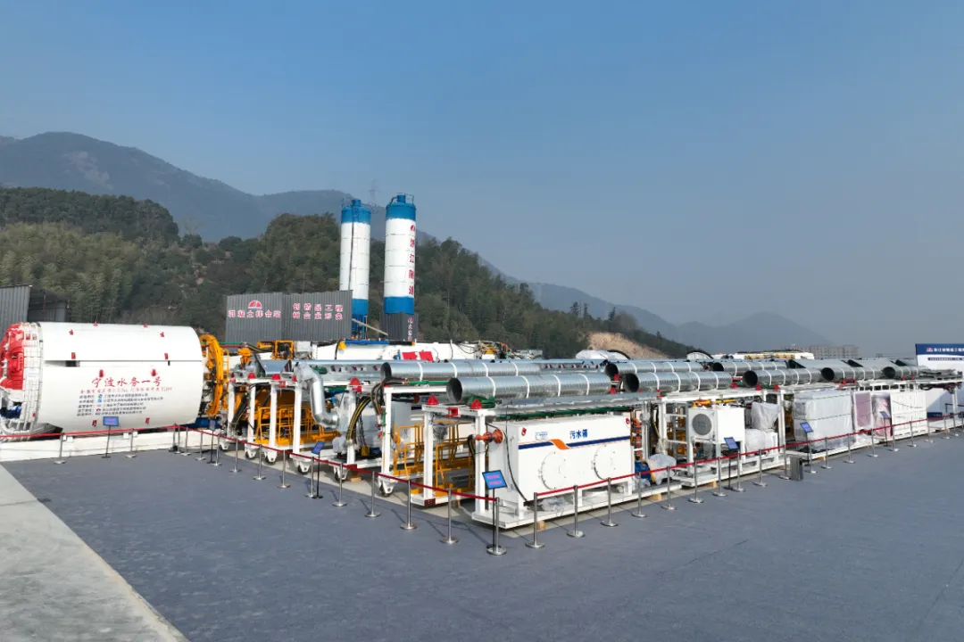 作為省、市重點(diǎn)工程建設(shè)項(xiàng)目,寧波市水庫群東西線聯(lián)通工程位于寧波市奉化區(qū)南部山區(qū),工程設(shè)計(jì)輸水規(guī)模為40萬m³/d。建設(shè)內(nèi)容包括一條干線、兩條支線,以及沿線調(diào)節(jié)站及各類閥井,全線總長約40.54km。6#隧洞作為本工程重要節(jié)點(diǎn)性分部工程,全長約12.28km,采用鉆爆法+TBM(全斷面硬巖掘進(jìn)機(jī))進(jìn)行隧洞開挖。值得一提的是,本次所采用的敞開式TBM設(shè)備“寧波水務(wù)一號(hào)”,其開挖直徑4.03米,整機(jī)長度約225米,掘進(jìn)長度10.87km,為寧波水利行業(yè)首次應(yīng)用。