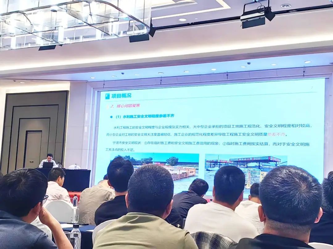 培訓現(xiàn)場,我院高級工程師潘炳成圍繞水利高質量發(fā)展和中國式現(xiàn)代化兩大任務,對寧波市水利工程建設安全文明施工標準化技術要點進行宣貫。從水利工程項目建設安全文明施工的規(guī)范標準到安全防護措施,從有限空間作業(yè)的安全管理到事故防范相關標準化要求,潘炳成結合安全生產事故實例,對標準進行系統(tǒng)梳理和量化解讀,并重點突出了“安全即底線”的施工理念。