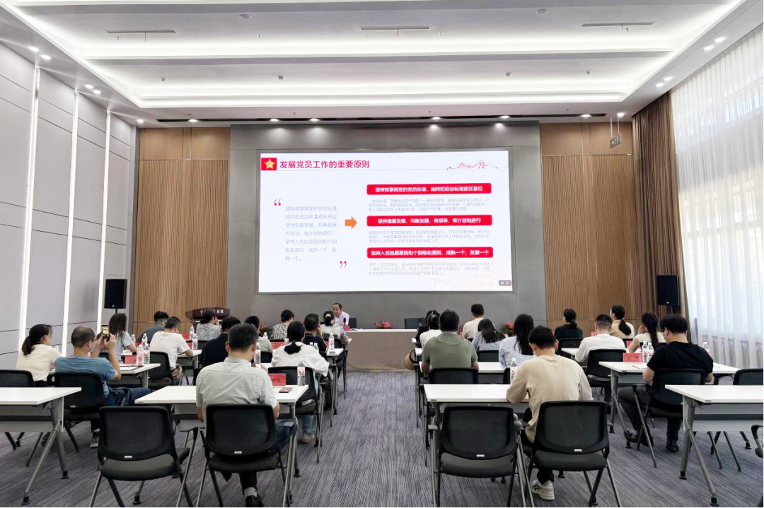 隨后,參訓(xùn)人員來到我院新大樓,在參觀了院史展廳和黨建活動(dòng)室之后,于一樓報(bào)告廳開展黨員發(fā)展實(shí)務(wù)專題培訓(xùn)。本次培訓(xùn)邀請(qǐng)到市水務(wù)設(shè)施運(yùn)行管理中心支部委員趙治山,圍繞黨員發(fā)展工作的全流程、各環(huán)節(jié)進(jìn)行了系統(tǒng)講解,重點(diǎn)對(duì)發(fā)展黨員工作中的標(biāo)準(zhǔn)要求、文書規(guī)范和常見問題作了詳細(xì)說明。培訓(xùn)內(nèi)容緊密結(jié)合工作實(shí)際,針對(duì)性強(qiáng),有效提升了參訓(xùn)人員的實(shí)務(wù)操作能力。與會(huì)黨務(wù)干部認(rèn)真聆聽了培訓(xùn)內(nèi)容,并就實(shí)際工作中遇到的問題相互進(jìn)行了交流探討。