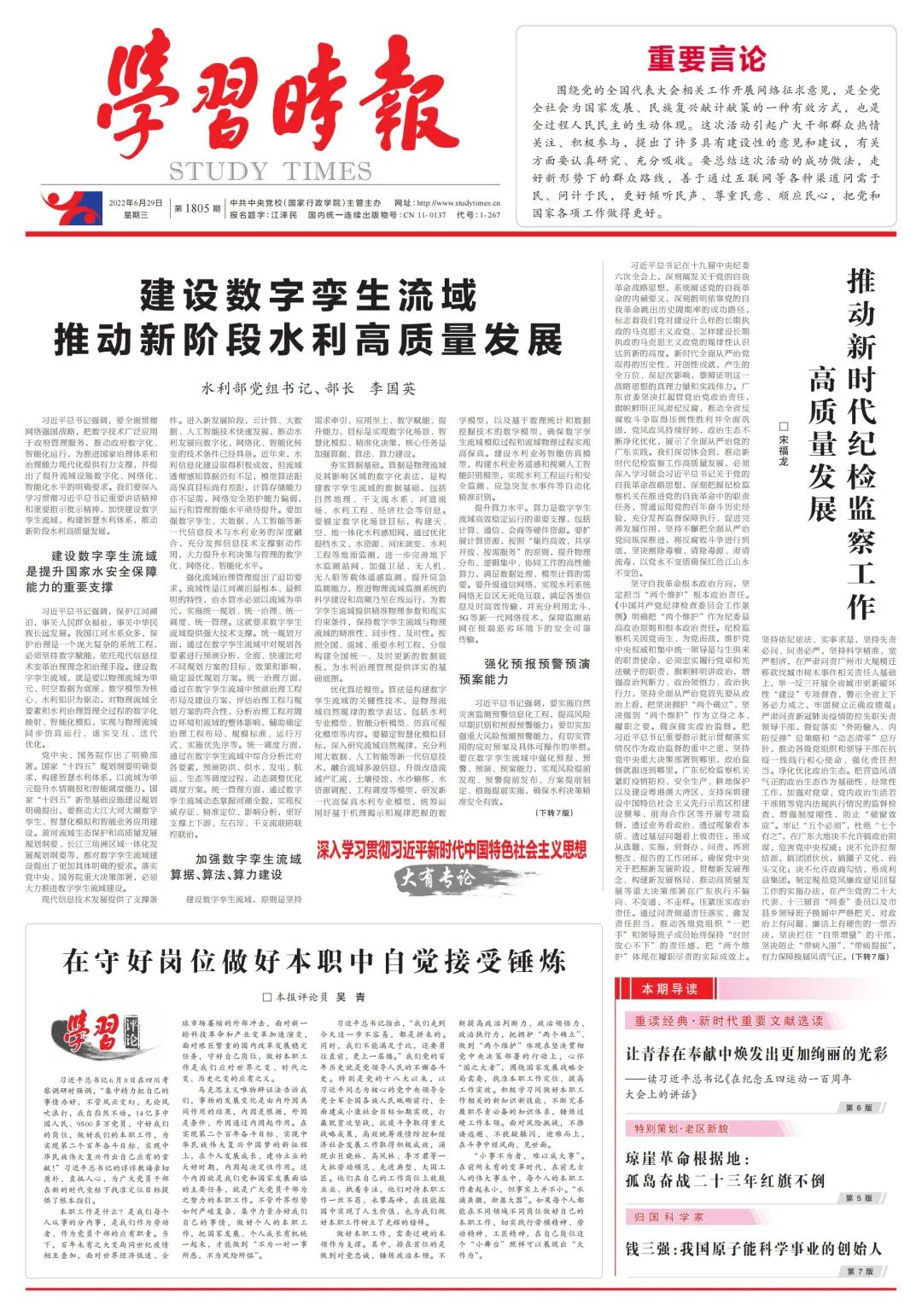 水利部黨組書記、部長李國英:建設數(shù)字孿生流域 推動新階段水利高質(zhì)量發(fā)展