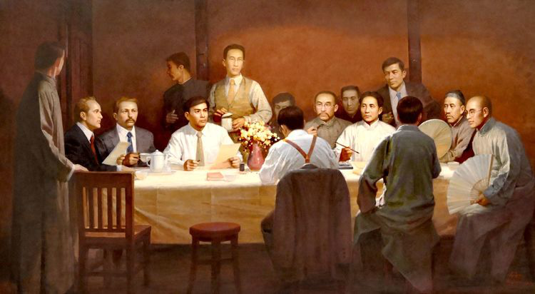7月23日晚,中國共產(chǎn)黨第一次全國代表大會在上海法租界望志路106號(今興業(yè)路76號)正式開幕。會址設(shè)在李書城、李漢俊兄弟住宅,大家圍坐在客廳長餐桌四周,室內(nèi)沒有特別布置,陳設(shè)簡單,氣氛莊重。出席者有上海的李漢俊、李達;北京的張國燾、劉仁靜;長沙的毛澤東、何叔衡;武漢的董必武、陳潭秋;濟南的王盡美、鄧恩銘;廣州的陳公博;留日學(xué)生周佛海以及陳獨秀委派的包惠僧。陳獨秀和李大釗因公務(wù)在身未出席會議,而在代表們心目中他們?nèi)允屈h的主要創(chuàng)始人和領(lǐng)袖。