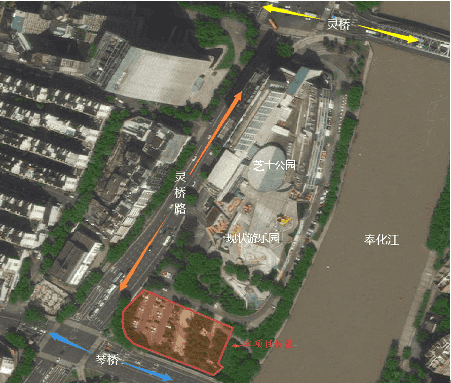 項(xiàng)目地塊位于芝士公園南側(cè),東臨奉化江,南鄰琴橋,西臨靈橋路,北至現(xiàn)狀游樂場(chǎng)。芝士公園位于寧波市海曙區(qū)靈橋路768號(hào),處于寧波核心地段三江口,臨近奉化江,對(duì)內(nèi)對(duì)外交通十分便利,區(qū)域優(yōu)勢(shì)明顯。
