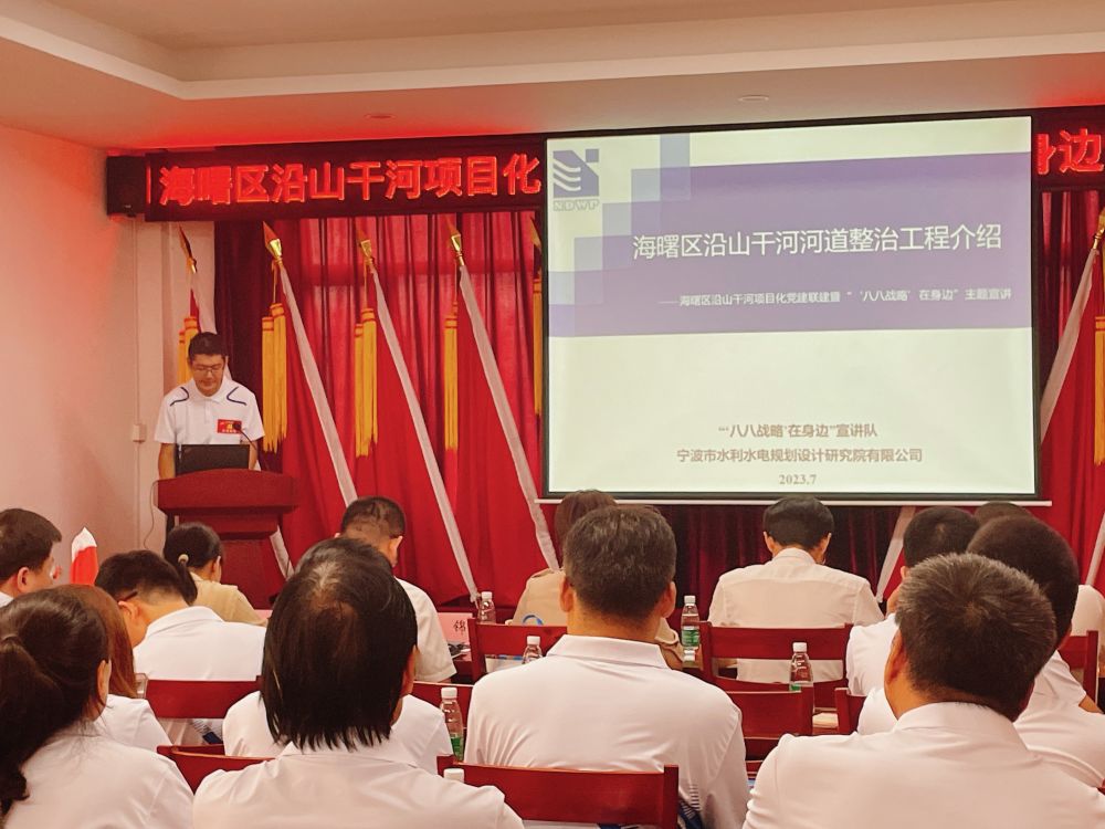 近日,海曙區(qū)直機(jī)關(guān)工委和區(qū)水利局以“五最黨建”為引領(lǐng),在集士港鎮(zhèn)岳童村文化禮堂舉行沿山干河項(xiàng)目化黨建聯(lián)建暨“‘八八戰(zhàn)略’在身邊”主題宣講啟動(dòng)儀式,我院作為沿山干河項(xiàng)目參建單位、活動(dòng)的承辦方參與了啟動(dòng)儀式。我院黨總支書(shū)記、副院長(zhǎng)王洪霞,工程設(shè)計(jì)項(xiàng)目組及青年黨員代表十余人參加了上述活動(dòng)。