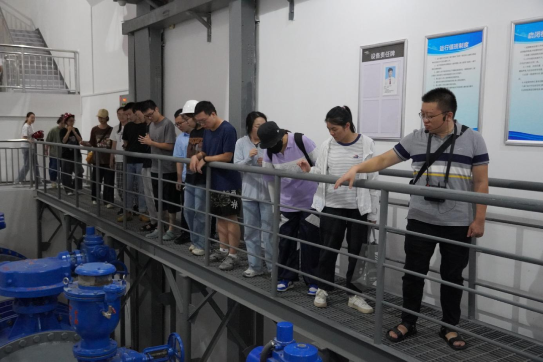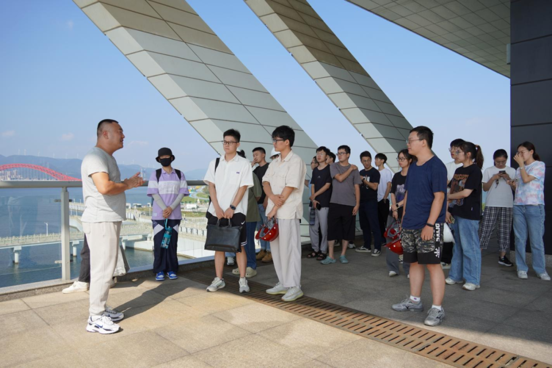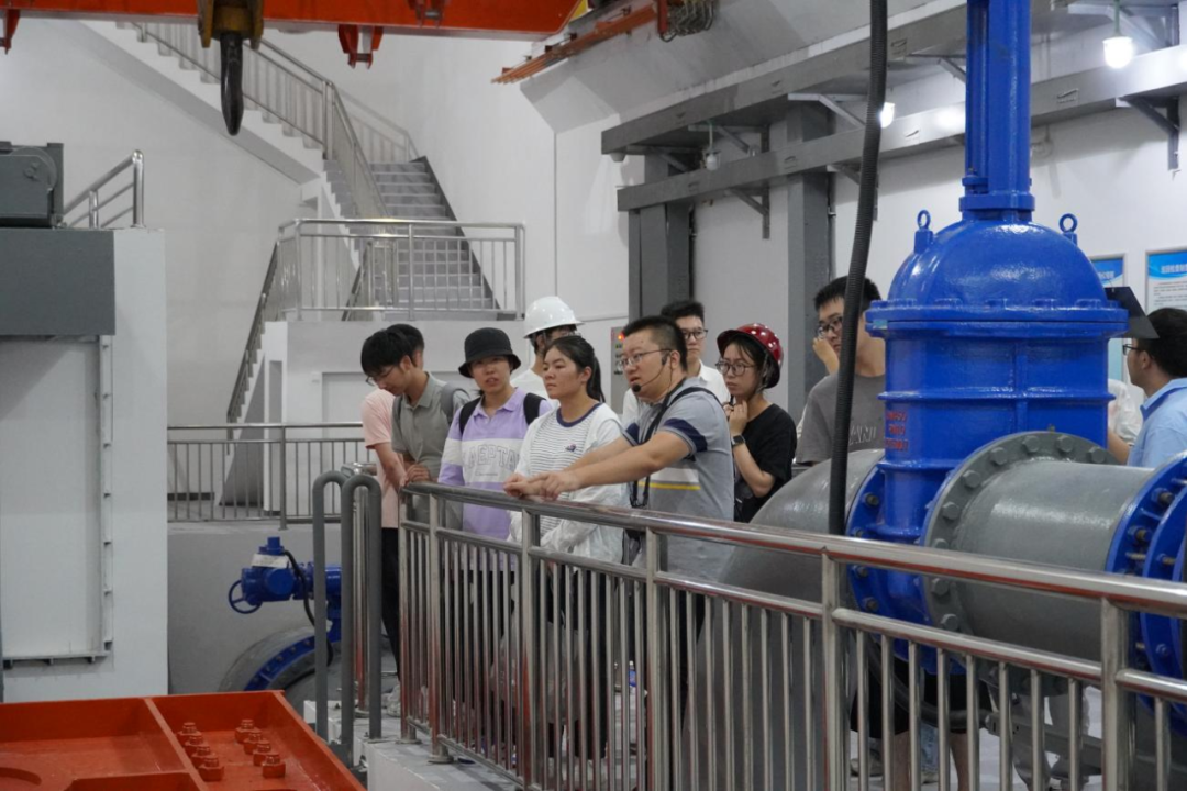 最后,研學(xué)隊伍來到北堤樞紐參觀。該工程榮獲中國建筑行業(yè)工程質(zhì)量的最高榮譽(yù)獎——2020-2021年度第一批中國建設(shè)工程魯班獎。胡經(jīng)理帶領(lǐng)研學(xué)隊伍依次進(jìn)入啟閉機(jī)房、觀景臺、控制室等處,現(xiàn)場講解工程設(shè)計思路、建造工藝和管理要點。